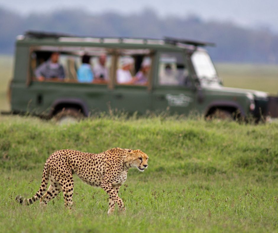 The guests, groom, and bride are transported to the location with our safari vehicles